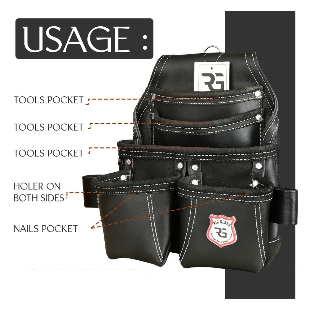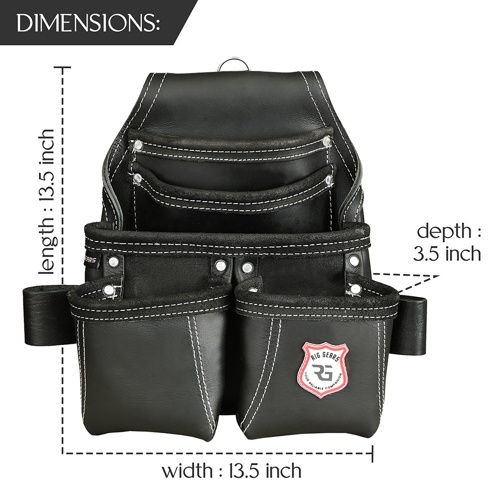 The Rig Gears Tool Pouch is composed of thick, 2.5 mm leather that is entirely natural. Whether you work as a full-time carpenter, electrician, framer, or maintenance worker, the robust stitching and sealed rivets on the Rig Gears Leather Tool bag provide durability and dependability. You can easily and quickly reach your daily tools with this bag at your fingertips.