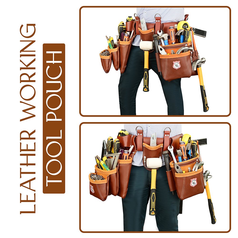 This incredible leather tool bag allows your work ethic to radiate from your whole body, leaving no mess to clean up and plenty of inspiration for new projects. Our multipurpose tool organizer set will come in handy whether you work as an electrician, carpenter, or in any other trade.