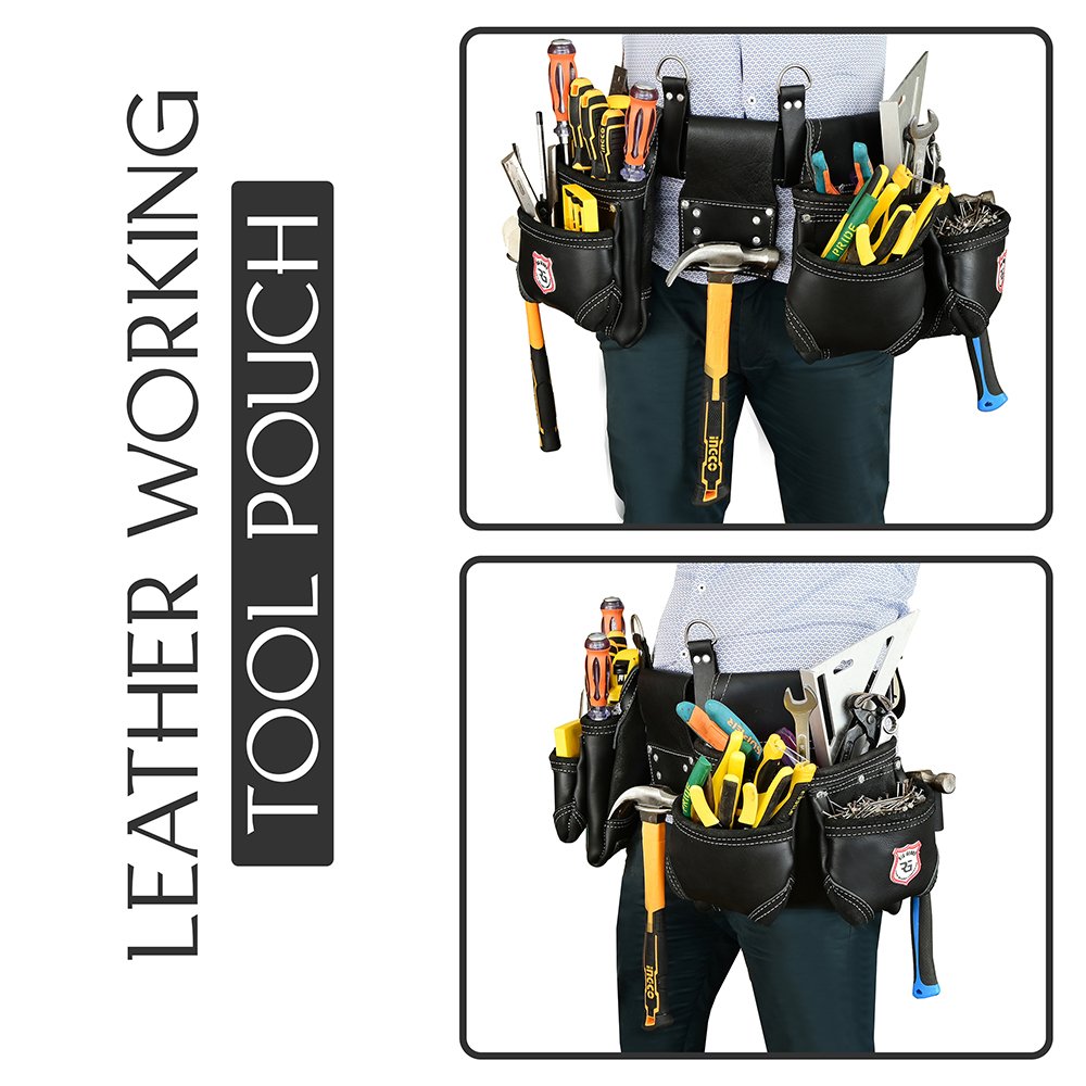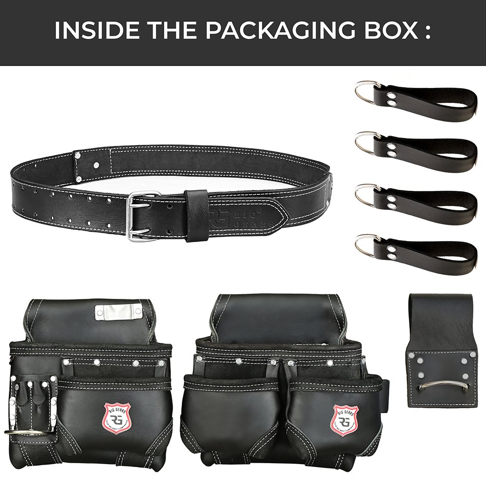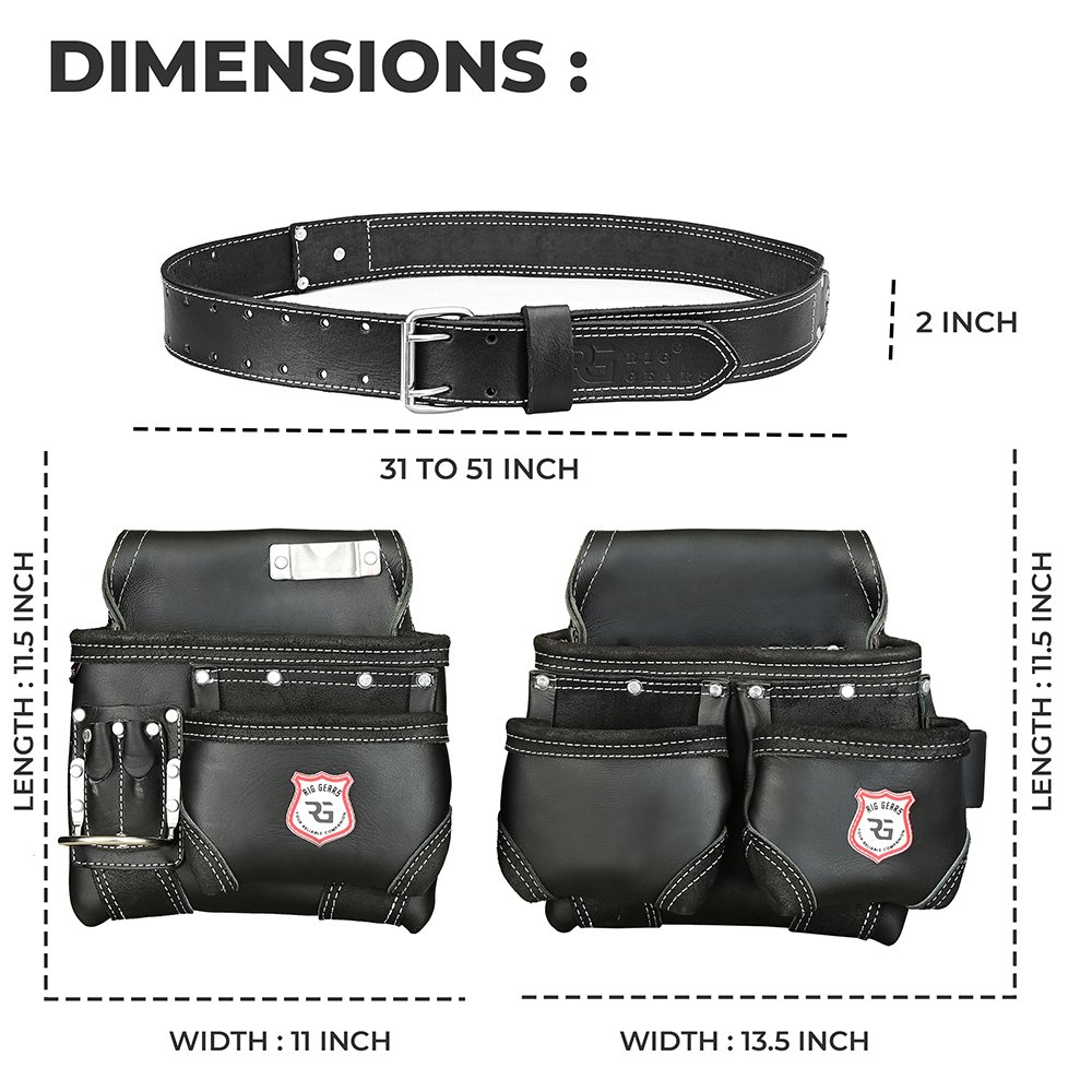 Rig Gears tools belt Suitable for both men and women for heavy-duty jobs, this multi-tool belt holster features a leather tool pouch. This product is the ideal tool for working people: an electrician’s tool pouch, a leather tool rig, a framing combo, and carpenter’s tool belts. Having large double side 11 pockets for more and more tools on duty.